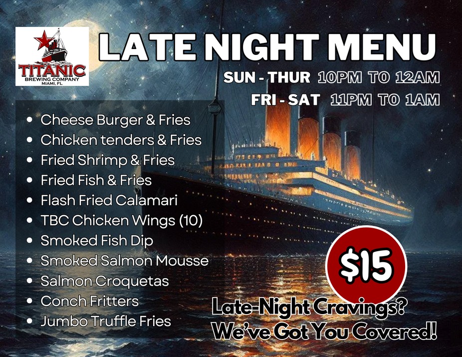 Full Bar . Late Night Menu.