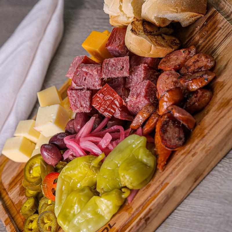 House-made with Flatbed crackers, chopped red onion, capers, bread