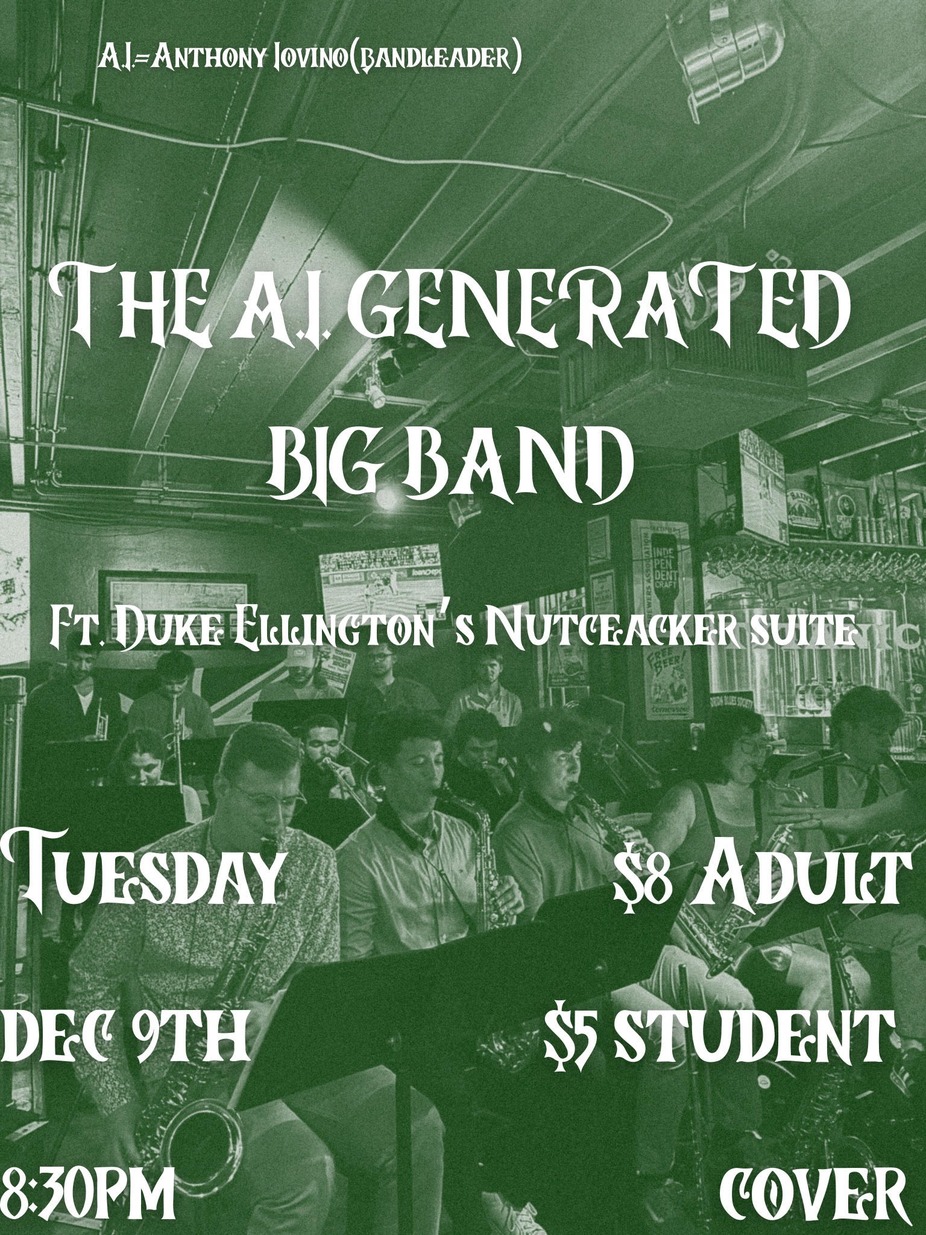 OMG - an 18-piece orchestra from the Frost Music School is doing a Christmas show at TITANIC Brewery! Band leader Anthony Invino brings his big band in for a holiday extravaganza featuring music from Duke Ellington's Nutcracker Suite. This just may be the SHOW OF THE YEAR!
